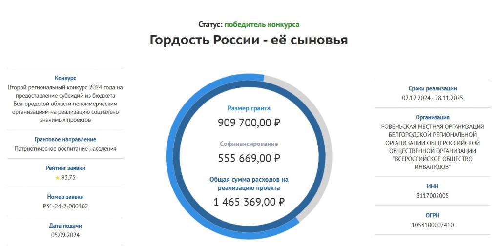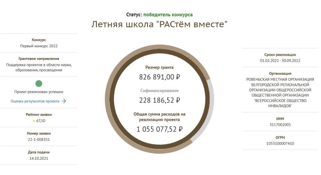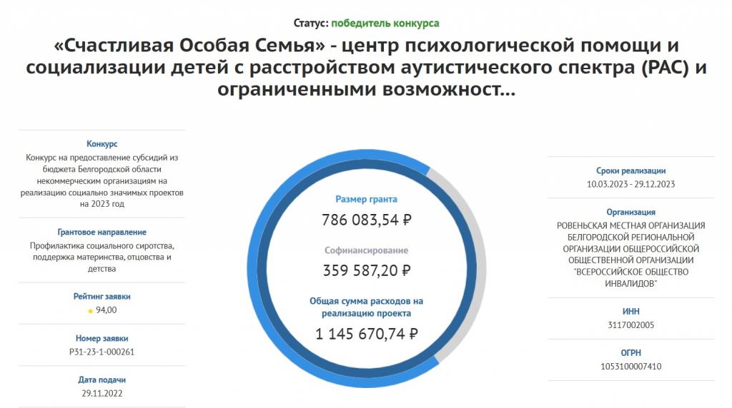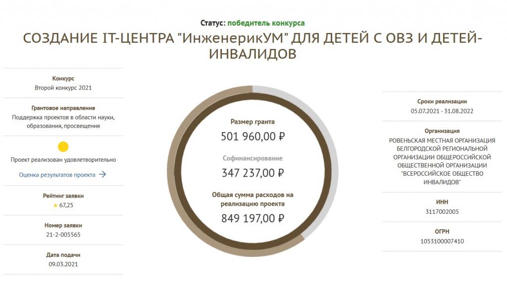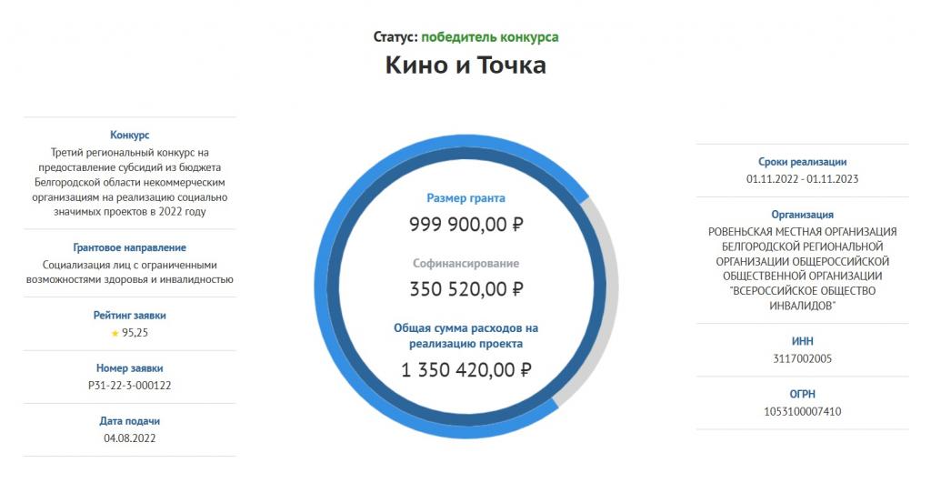 Проект стал победителем в третьем региональном конкурсе на предоставление субсидий из бюджета Белгородской области некоммерческим организациям на реализацию социально значимых проектов в 2022 году